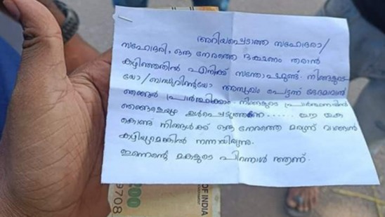 മെഡിക്കൽ കോളേജിലെ രോഗികൾക്കും കൂട്ടിരിപ്പുകാർക്കും ഉച്ചഭക്ഷണം നൽകുന്ന ഡിവൈഎഫ്ഐ കോഴിക്കോട് ജില്ലാ കമ്മിറ്റിയുടെ ‘ഹൃദയപൂര്വ്വം’ പരിപാടിയുടെ ഭാഗമായി വിതരണം ചെയ്ത ഭക്ഷണപൊതിയിലാണ് കുറിപ്പ് കണ്ടെത്തിയത്.