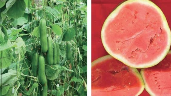 മഴമറയ്ക്കും പുറത്തും കൃഷിയിറക്കാൻ യോജിച്ച ഹീര, ശുഭ്ര എന്നീ കുക്കുമ്പർ സങ്കര ഇനങ്ങൾ പെൺ ചെടികളെ ഉപയോഗിച്ച് പച്ചക്കറി ശാസ്ത്ര വിഭാഗം ഉരുത്തിരിയിച്ചിട്ടുണ്ട് തുറസായ സ്ഥലത്ത് പരിസ്ഥിതി സൗഹൃദമായി തേനിച്ചകളെ ഉപയോഗിച്ചുള്ള പരാഗണം വഴി ഈ ഇനത്തിന്റെ വിത്തുണ്ടാക്കാനാവും. കനത്ത വിളവും ലഭിക്കും. ഗൈനീഷ്യസ് ടെക്നോളജി എന്ന ഈ സാങ്കേതിക വിദ്യ ഇന്ത്യയിൽ അപൂർവമായാണ് വിനിയോഗിച്ചിട്ടുള്ളത്.