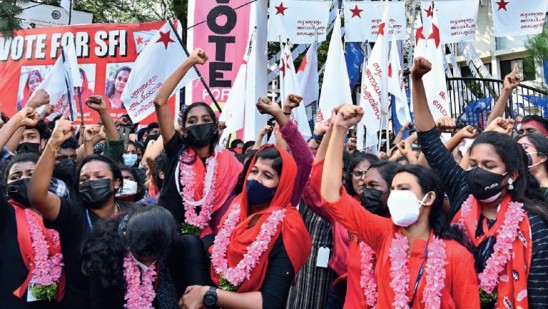 കേരള സർവകലാശാലയ്ക്ക് കീഴിലെ കോളേജ് യൂണിയൻ തെരഞ്ഞെടുപ്പിൽ ചരിത്ര വിജയവുമായി വീണ്ടും എസ്എഫ്ഐ. തെരഞ്ഞെടുപ്പ് നടന്ന 67 കോളേജിൽ 64ലും വിജയിച്ചു. തിരുവനന്തപുരത്ത് 32ൽ 30 ക്യാമ്പസിലും എസ്എഫ്ഐ വിജയക്കൊടി പാറിച്ചു. തിരുവനന്തപുരം ഇക്ബാൽ കോളേജും നഗരൂർ ശ്രീ ശങ്കരാചാര്യ വിദ്യാപീഠം കോളേജും കെഎസ്യുവിൽനിന്ന് തിരിച്ചുപിടിച്ചു. കൊല്ലത്ത് 18ൽ 17 കോളേജിലും വിജയിച്ചു. കൊട്ടാരക്കര സെന്റ് ഗ്രിഗോറിയോസ് കോളേജ് കെഎസ്യുവിൽനിന്നും ചാത്തന്നൂർ എസ്എൻ കോളേജ് കെഎസ്യു–- എബിവിപി സഖ്യത്തിൽനിന്നും പിടിച്ചെടുത്തു.