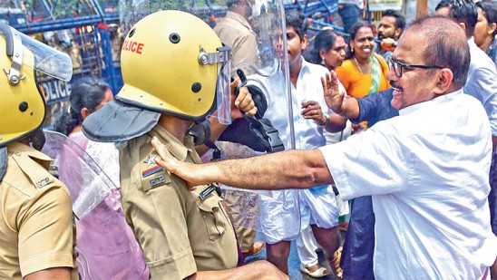 തിരുവനന്തപുരത്ത് സെക്രട്ടറിയറ്റിന് മുന്നിലും സംഘർഷത്തിന് കോപ്പുകൂട്ടി. ബാരിക്കേഡ് തള്ളിമറിച്ചും പൊലീസിനെ ആക്രമിച്ചും ലാത്തിച്ചാർജിനായിരുന്നു ശ്രമം. പൊലീസ് അതീവ സംയമനം പാലിച്ചതോടെയാണ് പദ്ധതി പാളിയത്. കോഴിക്കോടും കണ്ണൂരും മലപ്പുറത്തുമെല്ലാം ജലപീരങ്കി പ്രയോഗിച്ചാണ് അക്രമികളെ പിരിച്ചുവിട്ടത്.