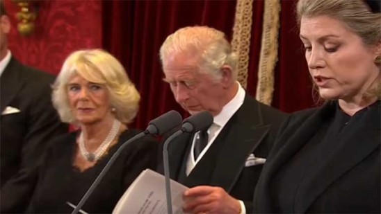 എലിസബത്ത് രാജ്ഞിയുടെ ശൈലി പിന്തുടരുമെന്ന് സ്ഥാനാരോഹണ കൗൺസിലിൽ അഭിസംബോധന ചെയ്തുള്ള പ്രസംഗത്തില് മകൻ ചാള്സ് മൂന്നാമന് രാജാവ് പറഞ്ഞു. എലിസബത്ത് രാജ്ഞിയുടെ മരണം ഔദ്യോഗികമായി അദ്ദേഹം ചടങ്ങിൽ പ്രഖ്യാപിച്ചു.
