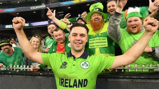 അയർലൻഡുകാരുടെ മൂർച്ചയുള്ള പന്തിനുപിന്നാലെ മഴയും വന്നതോടെ ഇംഗ്ലണ്ടിന്റെ പ്രതിരോധം ചോർന്നു. ട്വന്റി20 ക്രിക്കറ്റ് ലോകകപ്പിൽ അഞ്ച് റൺ തോൽവി. മഴനിയമപ്രകാരമാണ് അയർലൻഡിന്റെ വിജയം.