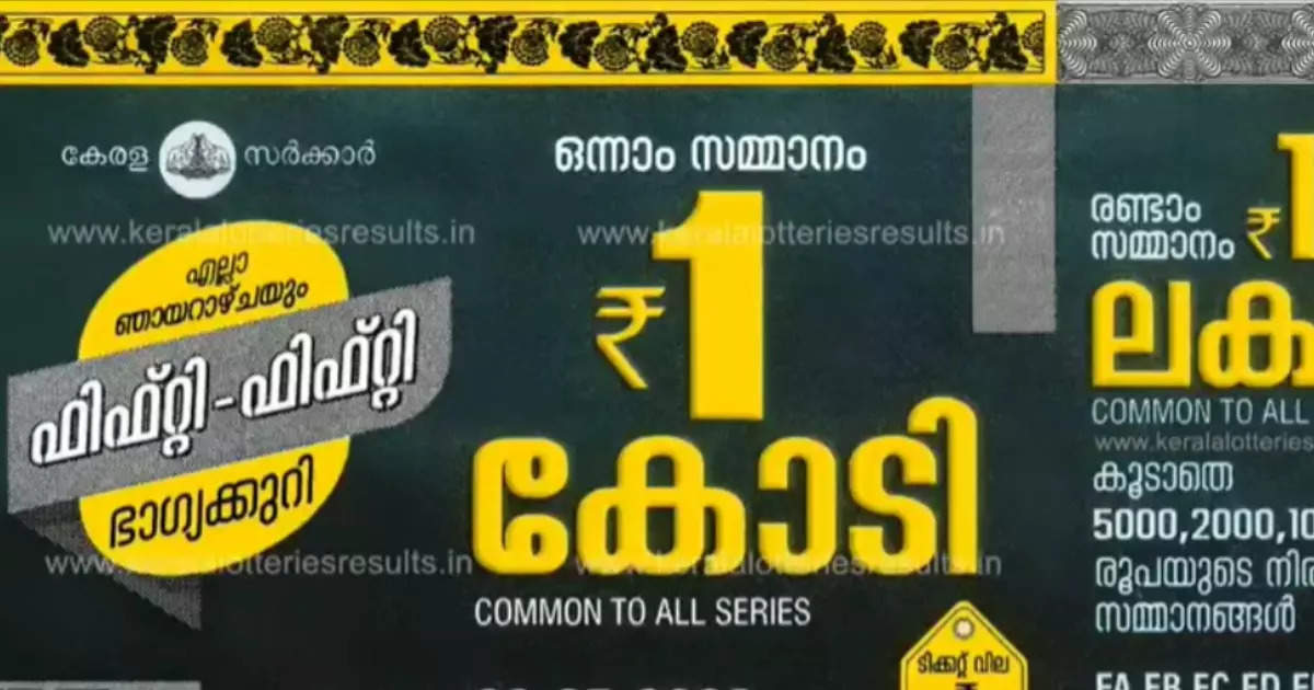 കേരള സംസ്ഥാന ഭാഗ്യക്കുറി വകുപ്പ് ഞായറാഴ്ചകളിൽ നറുക്കെടുത്തിരുന്ന ലോട്ടറിയാണ് ഫിഫ്റ്റി ഫിഫ്റ്റി (fifty fifty ff 26). കഴിഞ്ഞയാഴ്ച മുതലാണ് ബുധനാഴ്ചത്തേക്ക് നറുക്കെടുപ്പ് മാറ്റിയത്. ഫലം ഔദ്യോഗിക വെബ്സൈറ്റുകളില്.