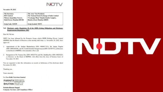 ഈ വർഷം ഓഗസ്റ്റിലാണ് അദാനി ഗ്രൂപ്പിന് ആർആർപിഎല്ലിന്റെ പൂർണ നിയന്ത്രണം ലഭിച്ചത്. എൻഡിടിവിയുടെ 29.18 ശതമാനം ഓഹരികൾ സ്വന്തമാക്കിയ അദാനി ഗ്രൂപ്പ് മറ്റ് ഓഹരി ഉടമകളില് നിന്നും 26 ശതമാനം ഓഹരി കൂടി വാങ്ങാനുള്ള ഓപ്പൺ ഓഫറുമായി രംഗത്തെത്തിയിരുന്നു. ബിഎസ്ഇ വെബ്സൈറ്റ് പ്രകാരം പ്രണോയ് റോയി ഇപ്പോഴും എൻഡിടിവിയുടെ ചെയർപേഴ്സണും രാധിക റോയ് എക്സിക്യൂട്ടീവ് ഡയറക്ടറുമാണ്.
