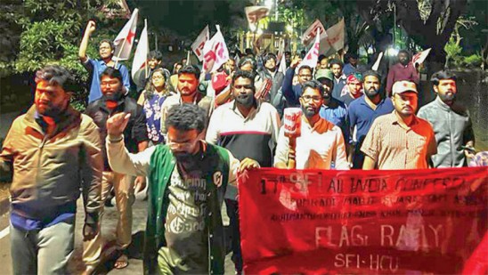 വിദ്യാഭ്യാസമേഖലയിലെ ഭാവി പോരാട്ടങ്ങൾ ഏറ്റെടുക്കാൻ എസ്എഫ്ഐയുടെ 17––ാം അഖിലേന്ത്യാ സമ്മേളനത്തിന് ചൊവ്വാഴ്ച ഹൈദരാബാദിൽ തുടക്കമാകും. പതാകജാഥകളെ തിങ്കളാഴ്ച ഹൈദരാബാദ് കേന്ദ്ര സർവകലാശാലയിൽ അഖിലേന്ത്യാ നേതൃത്വം സ്വീകരിച്ചു. ഇടുക്കി എൻജിനിയറിങ് കോളേജ് ക്യാമ്പസിലെ ധീരജ് രക്തസാക്ഷി നഗറിൽനിന്നും ബംഗാളിലെ അനീസ്ഖാൻ രക്തസാക്ഷി നഗറിൽ നിന്നുമാണ് ജാഥകൾ പുറപ്പെട്ടത്.