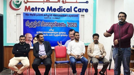കുവൈറ്റ് സിറ്റി> ആം ആദ്മി പ്രവാസി കൾച്ചറൽ അസോസിയേഷൻ (ആപ്പ്കാ) ആഭിമുഖ്യത്തിൽ റിപ്പബ്ലിക് ദിനാചരണം സംഘടിപ്പിച്ചു. ഫർമാനിയ മെട്രോ ഓഡിറ്റോറിയത്തിൽ കൺവീനർ അനിൽ ആനാടിന്റെ അധ്യക്ഷതയിൽ ‘ ഇന്നിന്റെ യാഥാർത്ഥ്യങ്ങളുടെ പൂർവ്വികർ ഇന്ത്യയും സ്വപ്നം കണ്ട റിപ്പബ്ലിക് ഇന്ത്യയും ‘ എന്ന വിഷയത്തെ ആസ്പദമാക്കി ചർച്ച സംഘടിപ്പിച്ചു.