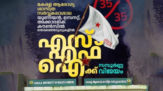 എസ്എഫ്ഐക്ക് മികച്ച വിജയം സമ്മാനിച്ച ആരോഗ്യ സർവ്വകലാശാലക്ക് കീഴിലെ മുഴുവൻ വിദ്യാർത്ഥികളെയും, ചരിത്ര വിജയത്തിനായി അഹോരാത്രം പ്രവർത്തിച്ച മുഴുവൻ സഖാക്കളെയും, സർവ്വകലാശാല യൂണിയനിലേക്കും, സെനറ്റിലേക്കും, അക്കാദമിക്ക് കൗൺസിലിലേക്കും തെരഞ്ഞെടുക്കപ്പെട്ട സഖാക്കളെയും എസ്എഫ്ഐ സംസ്ഥാന പ്രസിഡന്റ് കെ അനുശ്രീ സെക്രട്ടറി പി എം ആർഷൊ എന്നിവർ അഭിവാദ്യം ചെയ്തു.