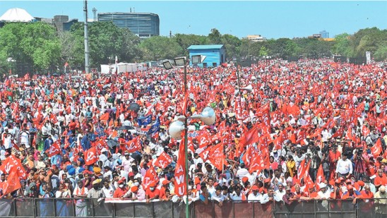 ഒൻപതുവർഷമായി തുടരുന്ന മോദി ഭരണത്തിനെതിരെ രാജ്യത്തെ തൊഴിലാളികളിലും കർഷകരിലും രൂപംകൊണ്ട അസ്വസ്ഥതയുടെയും രോഷത്തിന്റെയും പ്രതിഫലനമായി മഹാറാലി. വിവിധ കേന്ദ്രങ്ങളിൽനിന്ന് ചെറുപ്രകടനങ്ങളായി രാംലീല മൈതാനത്തേയ്ക്ക് എത്താനാണ് നിശ്ചയിച്ചിരുന്നതെങ്കിലും രാവിലെ ഒൻപത് കഴിഞ്ഞതോടെ വൻപ്രകടനങ്ങളാണ് രൂപംകൊണ്ടത്. ബംഗാളിൽനിന്ന് ജില്ലാ അടിസ്ഥാനത്തിലും തൊഴിൽമേഖലാ അടിസ്ഥാനത്തിലും ബാനറുകളുമായി തൊഴിലാളികൾ അണിനിരന്നു. തമിഴ്നാട്, തെലങ്കാന, ആന്ധ്രപ്രദേശ്, കർണാടക, ഹിമാചൽപ്രദേശ്, മധ്യപ്രദേശ്, ഉത്തർപ്രദേശ്, ജമ്മു കശ്മീർ, ഗോവ, ഗുജറാത്ത് എന്നിവിടങ്ങളിൽനിന്നും ഗണ്യമായ പങ്കാളിത്തം പ്രകടമായി. അത് മതനിരപേക്ഷ, പുരോഗമന, ജനാധിപത്യ പ്രസ്ഥാനങ്ങളുടെ സ്വാധീനം വളരുന്നതിന് തെളിവാണ്. റാലിക്ക് മുന്നോടിയായി ഗ്രാമ–- നഗരങ്ങളിൽ നടന്ന പ്രചാരണപരിപാടികളിലും ദശലക്ഷങ്ങൾ പങ്കുചേർന്നു.