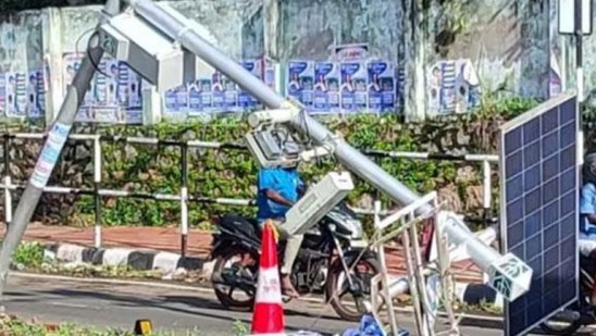 അടുത്ത മാസം അഞ്ച് മുതല് ഗതാഗത നിയമ ലംഘനത്തിന് പിഴ ചുമത്താനിരിക്കെയാണ് പോസ്റ്റ് ഒടിഞ്ഞ് വീണത്.ടിപ്പര് പോലീസ് കസ്റ്റഡിയില് എടുത്തു.