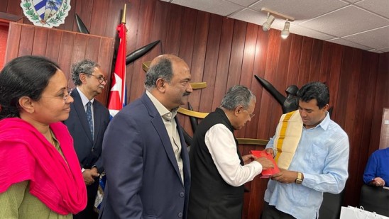 ഹവാന > മുഖ്യമന്ത്രി പിണറായി വിജയൻ ക്യൂബയിലെത്തി. ഹവാനയിലെ ജോസ് മാർട്ടി അന്താരാഷ്ട്ര വിമാനത്താവളത്തിൽ മുഖ്യമന്ത്രിക്കും സംഘത്തിനും സ്വീകരണം നൽകി. ഹവാന ഡെപ്യൂട്ടി ഗവർണർ, ക്യൂബയിലെ ഇന്ത്യൻ അംബാസിഡർ തുടങ്ങിയവർ ചേർന്നാണ് മുഖ്യമന്ത്രിയെയും സംഘത്തെയും സ്വീകരിച്ചത്. ഇന്നും നാളെയും ഹവാനയിലെ വിവിധ പരിപാടികളിൽ മുഖ്യമന്ത്രി പങ്കെടുക്കും. വിവിധ പ്രമുഖരുമായും മുഖ്യമന്ത്രി കൂടിക്കാഴ്ച നടത്തുന്നുണ്ട്. ജോസ് മാർട്ടി ദേശീയ സ്മാരകമടക്കം ചരിത്ര പ്രാധാന്യമുള്ള സ്ഥലങ്ങളും മുഖ്യമന്ത്രി സന്ദർശിക്കും.