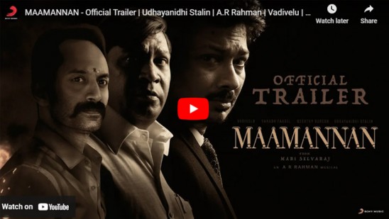 കൊച്ചി> ഉദയനിധി സ്റ്റാലിൻ, ഫഹദ് ഫാസിൽ, വടിവേലു, കീർത്തി സുരേഷ് എന്നിവർ പ്രധാന കഥാപാത്രങ്ങളെ അവതരിപ്പിക്കുന്ന മാമന്നന്റെ ട്രെയിലർ റിലീസായി. പ്രേക്ഷകരെ ത്രസിപ്പിക്കുന്ന ട്രൈലെർ തിയേറ്ററിൽ കാഴ്ചയുടെ പുതിയ വിരുന്നൊരുക്കുമെന്നുറപ്പാണ്. പരിയേറും പെരുമാൾ, കർണ്ണൻ എന്നി ബ്ലോക്ക് ബസ്റ്റർ ചിത്രങ്ങൾക്ക് ശേഷം മാരി സെൽവരാജ് സംവിധാനം ചെയ്യുന്ന ചിത്രമാണ് മാമന്നൻ.