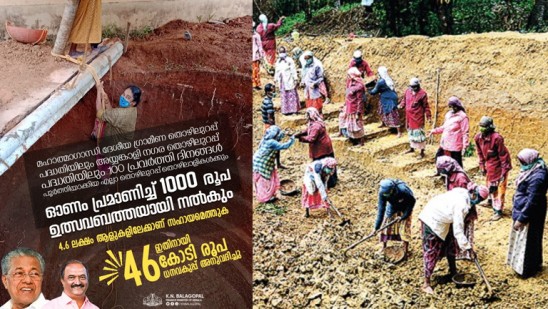 തിരുവനന്തപുരം > ഓണം പ്രമാണിച്ച് 100 പ്രവർത്തി ദിനങ്ങൾ പൂർത്തിയാക്കിയ എല്ലാ തൊഴിലുറപ്പ് തൊഴിലാളികൾക്കും 1000 രൂപ ഉത്സവബത്ത നൽകാൻ തീരുമാനം. മഹാത്മാഗാന്ധി ദേശീയ ഗ്രാമീണ തൊഴിലുറപ്പ് പദ്ധതിയിലും അയ്യങ്കാളി നഗര തൊഴിലുറപ്പ് പദ്ധതിയിലും 100 പ്രവർത്തി ദിനങ്ങൾ പൂർത്തിയാക്കിയ എല്ലാ തൊഴിലുറപ്പ് തൊഴിലാളികൾക്കും ഓണം പ്രമാണിച്ച് 1000 രൂപ ഉത്സവബത്തയായി നൽകുമെന്ന് ധനകാര്യ വകുപ്പ് മന്ത്രി കെ എൻ ബാലഗോപാൽ അറിയിച്ചു .