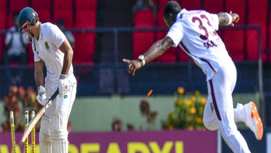 ഒരുഘട്ടത്തിന് 139 റണ്ണെടുക്കുന്നതിനിടെ ദക്ഷിണാഫ്രിക്കയ്ക്ക് അഞ്ച് വിക്കറ്റ് നഷ്ടമായിരുന്നു. വെറെയ്ന്നെയും മുൾദറും മൂന്നാംദിനം വേഗത്തിൽ പുറത്തായി. അവസാന അഞ്ച് വിക്കറ്റ് 22 റണ്ണിനാണ് അവർക്ക് നഷ്ടപ്പെട്ടത്. 263 റൺ ലക്ഷ്യവുമായി ഇറങ്ങിയ വിൻഡീസ് രണ്ടാം ഇന്നിങ്സിൽ ഒരു വിക്കറ്റ് നഷ്ട്ടത്തിൽ 19 റണ്ണെന്ന നിലയിലാണ്.