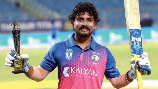 എം എസ് അഖിൽ അർധസെഞ്ചുറിയുമായി വിജയമൊരുക്കി. 37 പന്തിൽ 54 റണ്ണടിച്ചപ്പോൾ അഞ്ച് സിക്സറും രണ്ട് ഫോറും ഉൾപ്പെട്ടു. ഗോവിന്ദ് പൈ 23 പന്തിൽ 30 റണ്ണുമായി പിന്തുണച്ചു. ഇരുവരും മൂന്നാംവിക്കറ്റിൽ പുറത്താകാതെ 87 റണ്ണടിച്ചു. റിയാ ബഷീർ (22), എസ് സുബിൻ (21) എന്നിവരുടെ വിക്കറ്റുകളാണ് നഷ്ടമായത്. അഖിൽ കളിയിലെ താരമായി.
